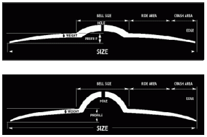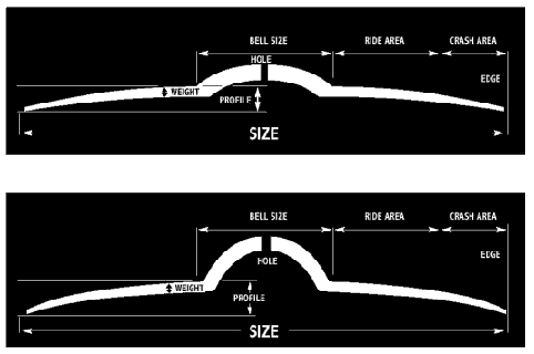 Τα πιατίνια με μεγαλύτερο bell («καμπάνα»), παράγουν περισσότερους αρμονικούς και ο ήχος τους έχει μεγαλύτερο όγκο και ένταση από τα πιατίνια με μικρότερο bell.